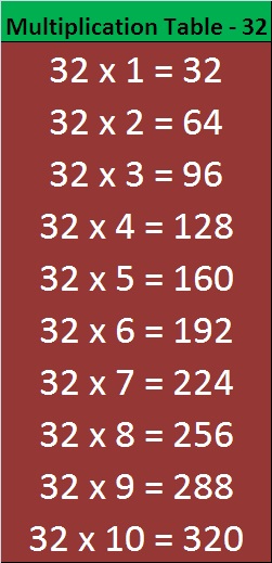 32 Times Tables Chart